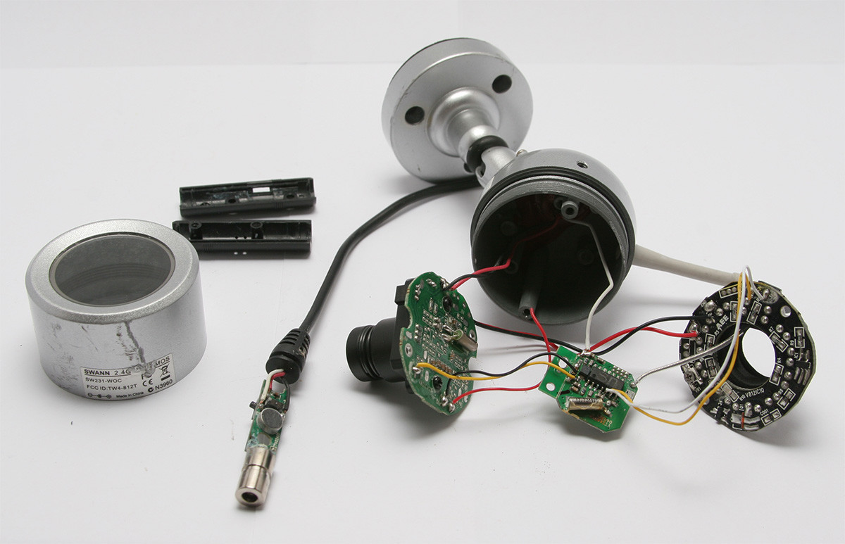 Разглобена камера за видеонаблюдение. Можем да разделим една камера на четири основни компонента - корпус, оптика, електроника (сензор, процесор и др.) и софтуер (при IP камерите). Сензорите се произвеждат от няколко основни производителя на електроника (сред които са Sony и Samsung ) и не са разнообразни, така че на практика всички камери със сходни параметри използват един и същ сензор. Сходна е и ситуацията с оптиката. При корпусите си личи разликата между моделите на реномираните производители (по-качествени, добре полирани пластмаси) и бюджетните такива (по-твърди и груби пластмаси), но от друга страна това не са уреди, които докосвате ежедневно (като телефони, коли, бяла техника и т.н.), така че този показател не трябва да е водещ при избора ви. При софтуерът на IP камерите разликите в качеството са най-осезаеми и ако имате възможност си струва са инвестирате в модел на доказан производител. Всеки производител може да произведе камера, но не всеки може да я направи удобна за използване и съвместима с други устройства.