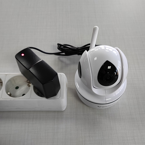 Камерата трябва да е поставена на място с Wi-Fi Интернет и в близост до контакт. Захранващият адаптер е с дължина 1.5 метра.Телефонът