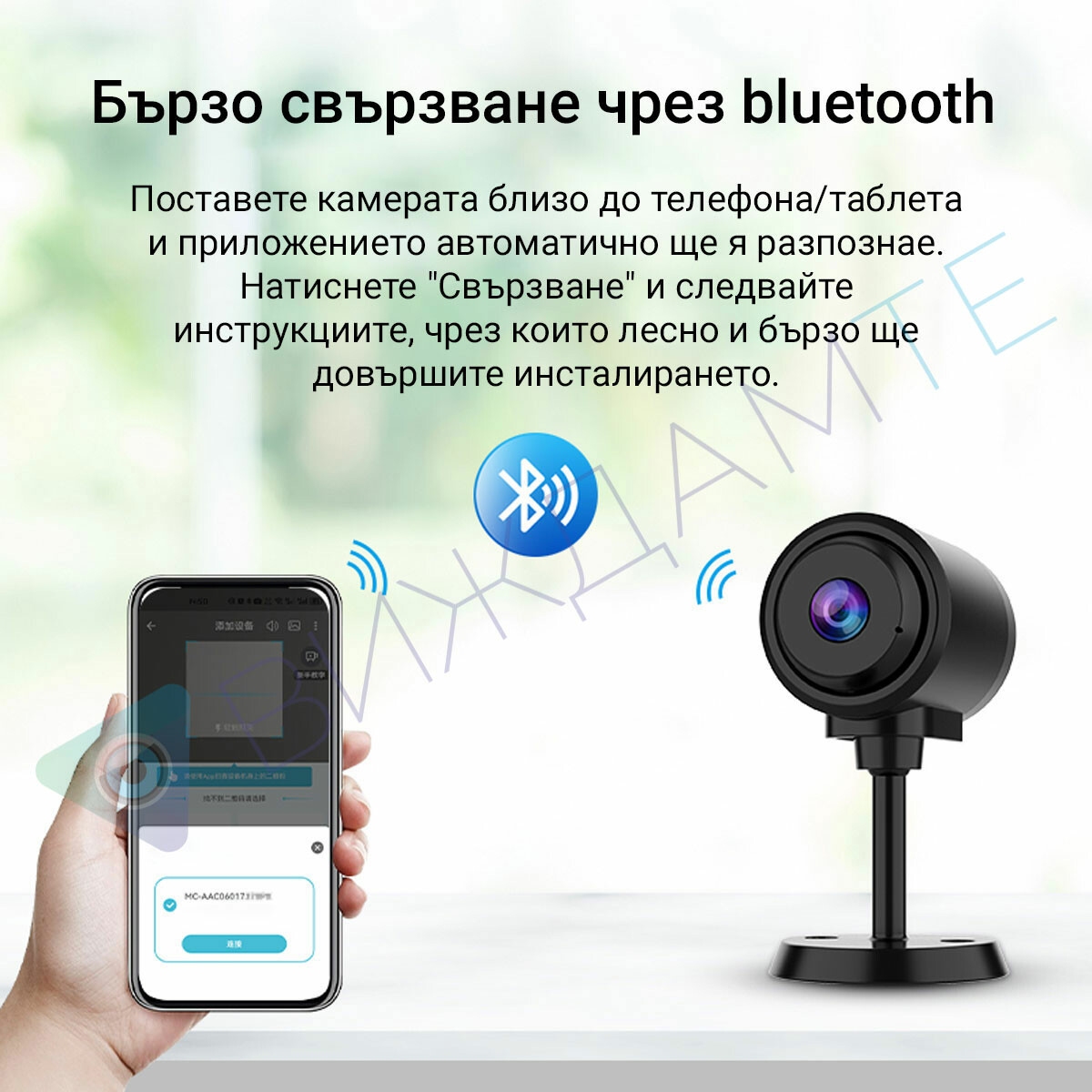 Камерата се настройва еднократно чрез безплатна програма за телефон.