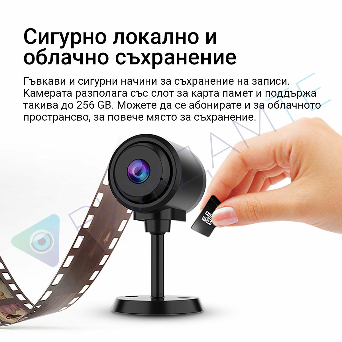 Всичките ни камери работят с карти памет MicroSD и поддържат такива до 256GB.