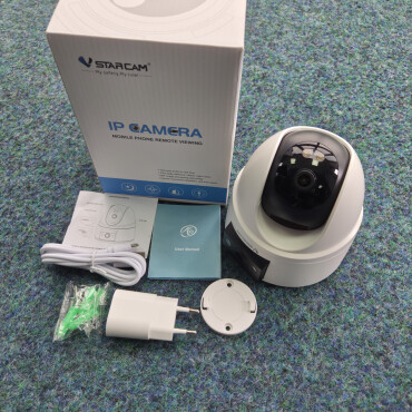 Камерата се свързва с Интернет и предава видео безжично. Единственото, което трябва да направите, е да я включите в контакт.