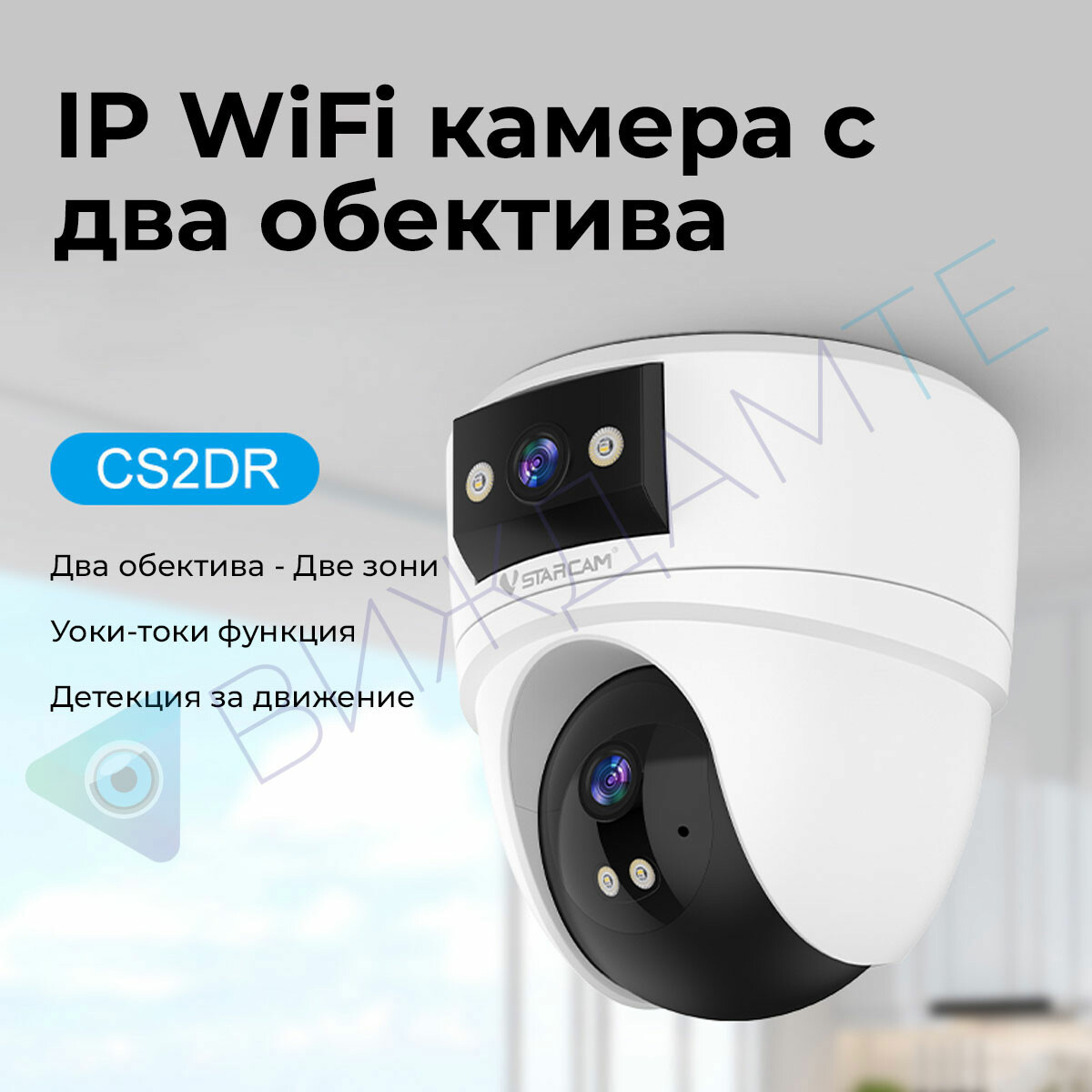 Камерата е оборудвана с инфрачервено (IR) нощно виждане. Когато се стъмни или загасите осветлението, камерата автоматично преминава в нощен режим (черно-бял) и ви позволява да виждате, дори и в пълен мрак.