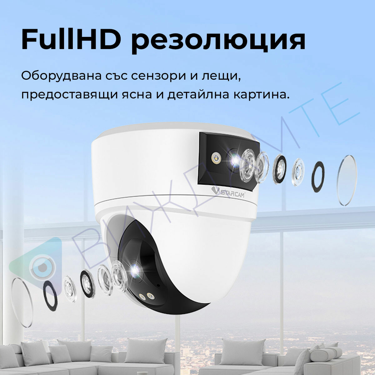 Корпусът на камерата предпазва от проникване на влага и дребни частици (прах и мръсотия). Можете да я монтирате на открито без притеснения, че ще се повреди.
