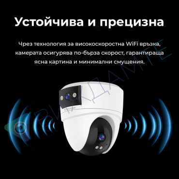 Камерата разполага с моторизиран корпус, който ви позволява да я завъртате по хоризонтала и вертикала. Нужно е само да плъзнете с пръст в желаната посока на екрана на телефона ви.