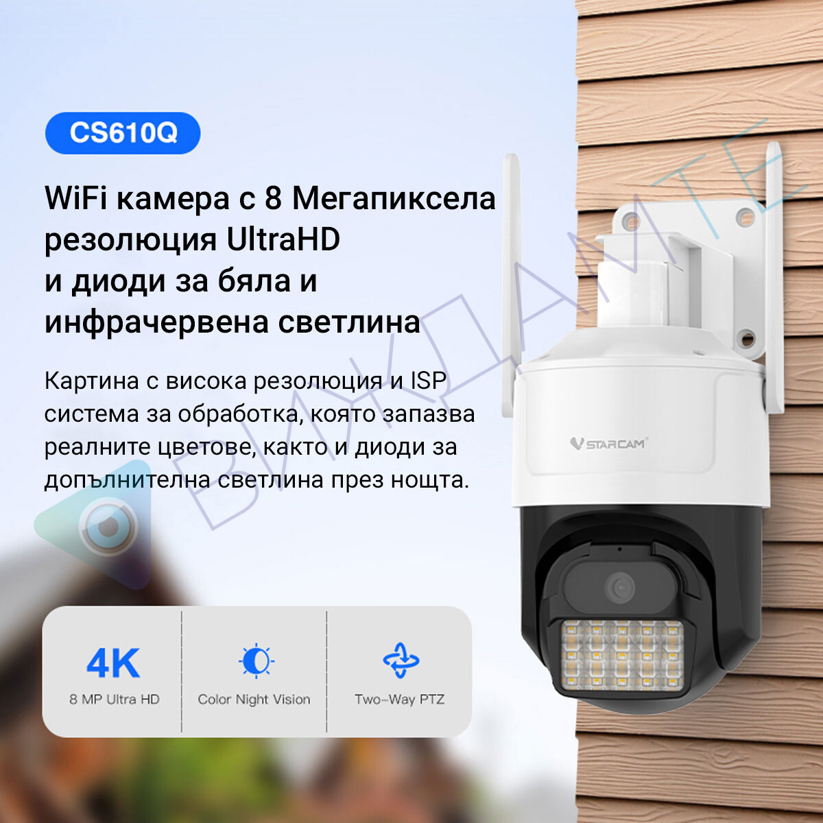 Тази камера има вградено осветление, което може да се задейства автоматично при засичане на движение. Това изпраща ясен сигнал на човека пред камерата, че е наблюдаван. Осветлението може включвате и ръчно в случай, че искате да виждате цветно в тъмната част на денонощието.
