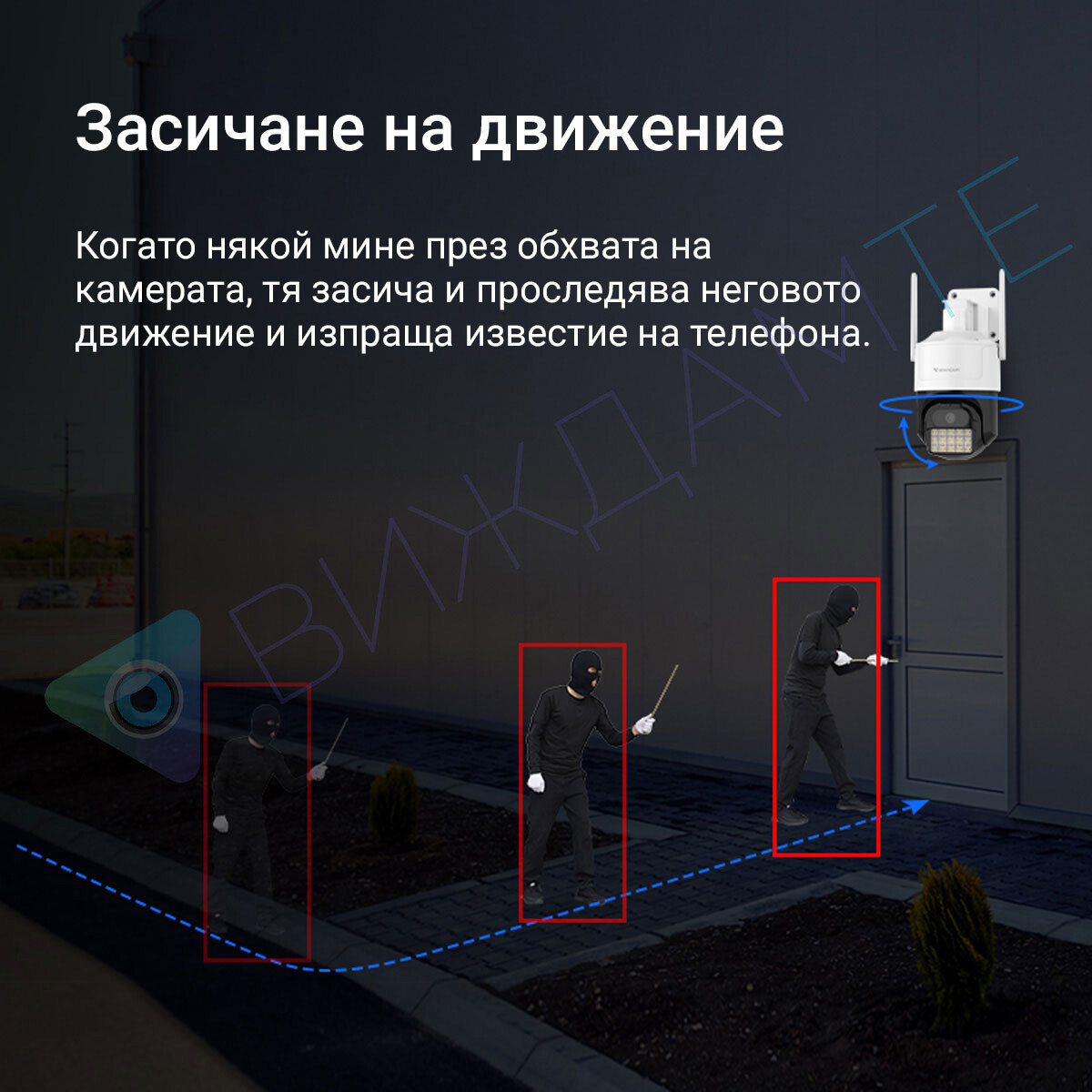 Камерата сама проследява движещи се обекти които са в полезрението и. След като обектът излезе извън него или движението му спре, камерата се връща в обичайната си позиция.