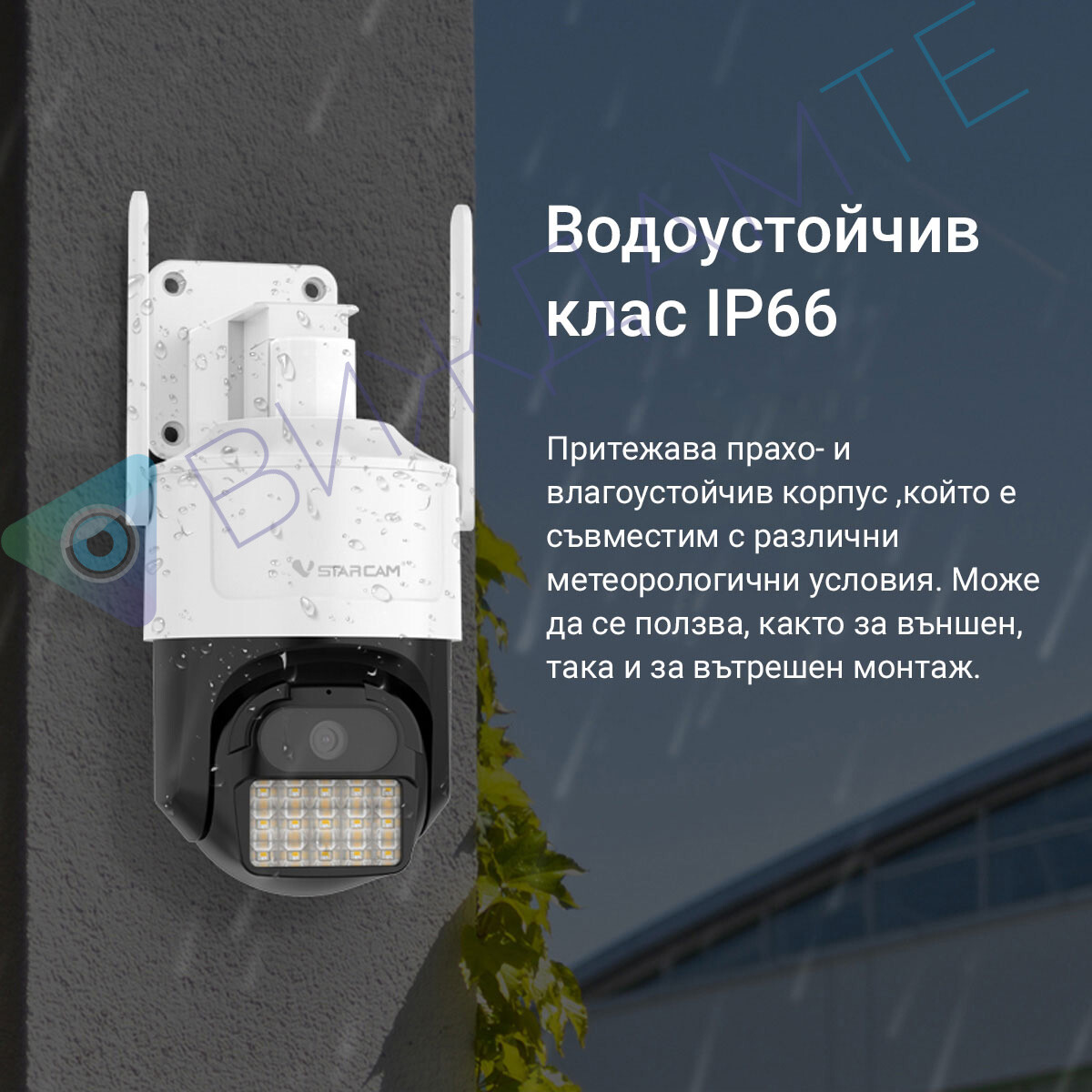 Корпусът на камерата предпазва от проникване на влага и дребни частици (прах и мръсотия). Можете да я монтирате на открито без притеснения, че ще се повреди.